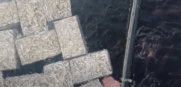 사각형태의 생사료 바다로 투입