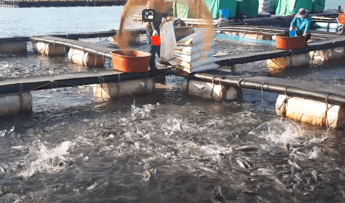 간단설명 - 동글동글한 고효율의 사료를 물고기에게 급이한다.