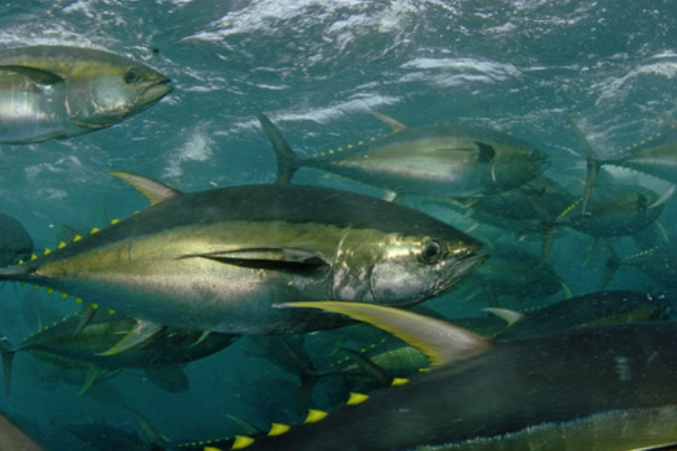 3. 황다랑어(yellowfin tuna) : 눈다랑어보다 크기가 작고 지방이 적습니다. 태평양, 인도양, 대서양 등의 열대, 아열대 해역에 분포하며 몸길이는 1.5m, 몸무게는 약 70kg까지 성장합니다.