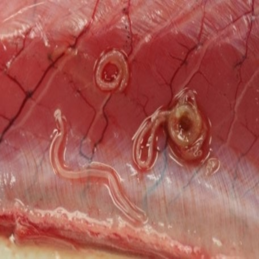 2. 알이 물고기나 갑각류에게 먹혀 유충 상태로 생선의 근육이나 내장에 서식