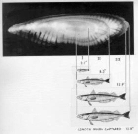 - 척추뼈나 지느러미 뼈에도 성장 고리가 있음
