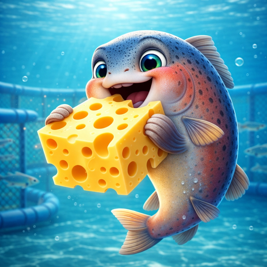 치즈 분말은 단기적 성장 촉진이나 사료 기호성 개선 목적으로 소량 첨가할 수 있으나, 비용과 염분 문제로 인해 일반적인 양식장 사료의 주원료로는 부적합합니다.