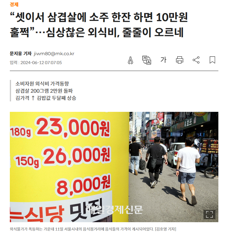 셋이서 삼겹살 먹으면 10만원의 시대