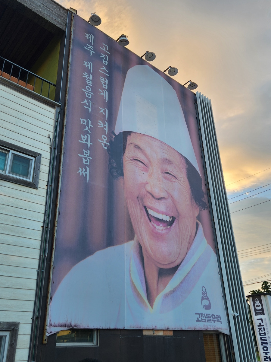 가게 옆면에 커다랗게 주인장 할머니의 사진이 걸려있어요
