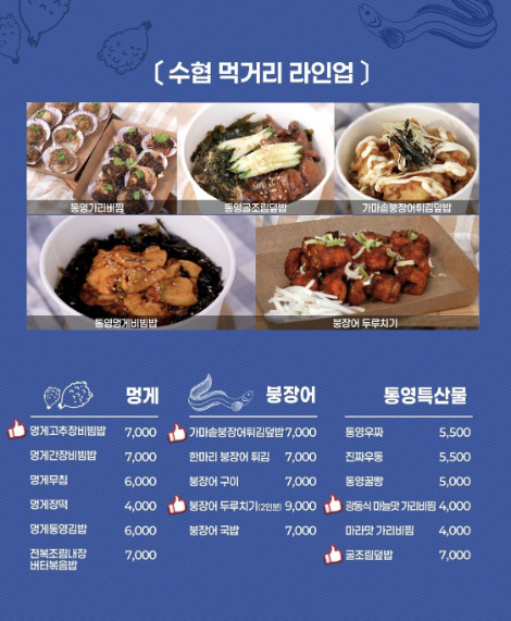 수협 먹거리 라인업을 봤을 때 정말 가고싶다는 생각이 들만큼 다양하고 가성비 좋은 메뉴들이 눈에 들어왔습니다
