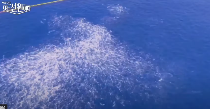 • 바다가 잔잔하지만 그 속에서 참치들이 빠른 속도로 내달리고 있다.